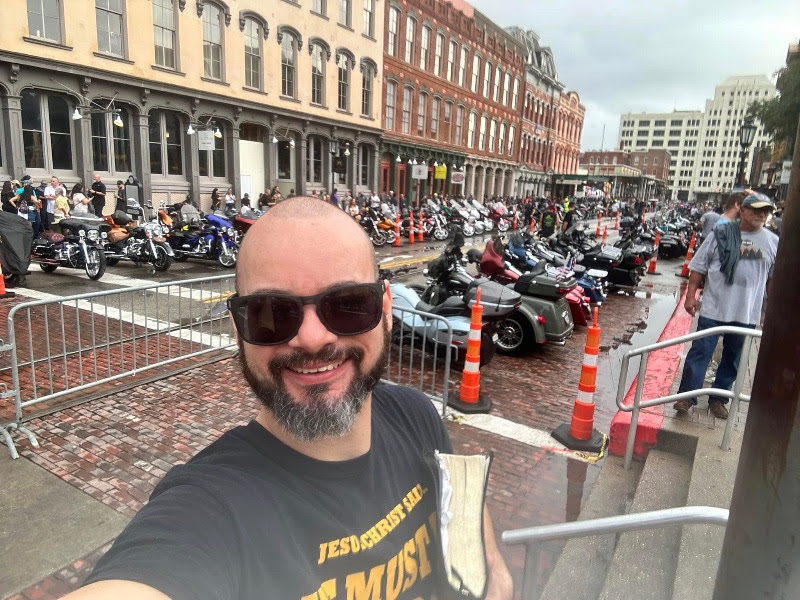Centrul istoric și Seawall Blvd au fost aglomerate zile întregi de motocicliști. Oriunde te duceai pe insula Galveston, auzeai motociclete. Biserica motocicliștilor și-a amenajat standul în centrul orașului, unde puteau vorbi cu motocicliștii despre Hristos. Am plecat să caut un colț de stradă bun de unde să predic.