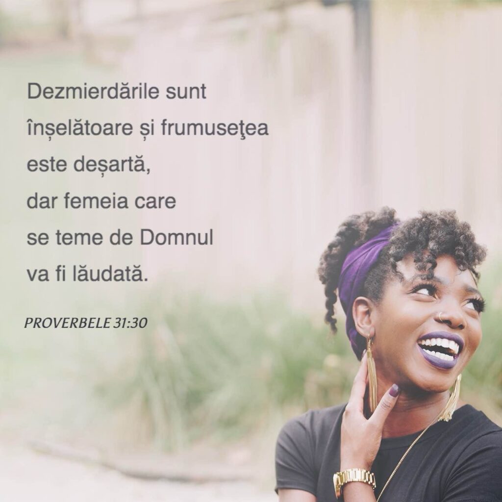 „Farmecul este înșelător și frumusețea este deșartă, dar femeia care se teme de Domnul va fi lăudată.”
