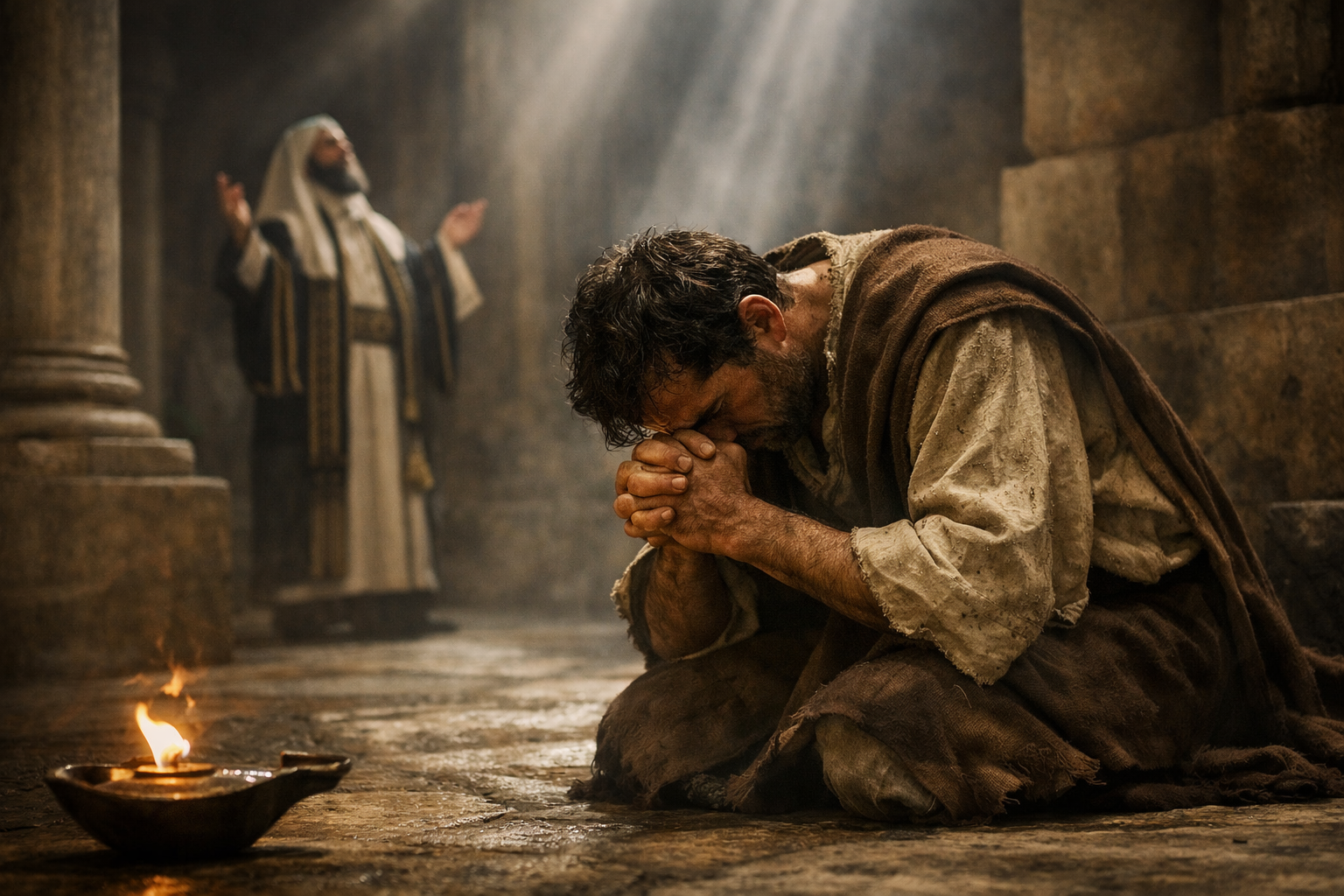 Fiecare a crezut că nu îl știe nimeni în interior, dar glasul tăcut este făcut de cunoscut de Hristos. Unul spune ce face, altul recunoaște cum este. Pe unul îl interesează liniștirea conștiinței prin frecventare, bifează prezența, dar fără transformare, pe celălalt îl interesează eliberarea de greul păcatului care apasă în sufletul lui.