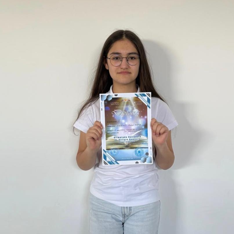 „Pentru mine, a studia Biblia înseamnă câteva momente în care mă conectez cu Dumnezeu, învăț mai multe despre Dumnezeu și despre puterea cu care El a călăuzit pe fiecare în viața lui si învăț și eu să mă încred în El. Cea mai importantă lecție pe care am învățat-o în timpul pregătirii pentru olimpiadă a fost perseverența. Am învățat că stând focusată pe un lucru ar trebui ca acel lucru să dea rezultate. Înainte de concurs m-am rugat, apoi am avut credință că Dumnezeu îmi va da putere, îmi va aduce aminte tot ce am învățat și îmi va da siguranță. Le-aș spune colegilor că merită să studieze Biblia deoarece în ea poți găsi speranță, liniște, dar cel mai important aflăm despre mântuirea sufletelor noastre, care se află în Domnul Isus Hristos”, ne împărtășește Văran Abigail, LTB Reșița, cls. V-a.