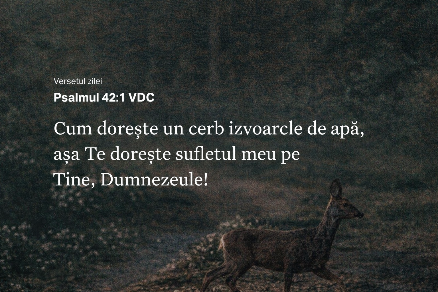 Autorul Psalmului 42 se compară pe sine cu un cerb ce tânjește după apă. Cerbul este obosit și însetat, așa că tot ce își dorește e să găsească un izvor din care să bea.