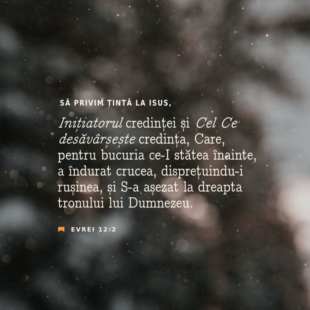 Isus a îndurat durerea crucii cu bucurie pentru că El și-a păstrat privirea ațintită pe linia de sosire – stând într-un loc de autoritate lângă Dumnezeu Tatăl și obținând mântuirea pentru urmașii Săi. Acum experimentăm beneficiul mântuirii datorită rezistenței Sale.